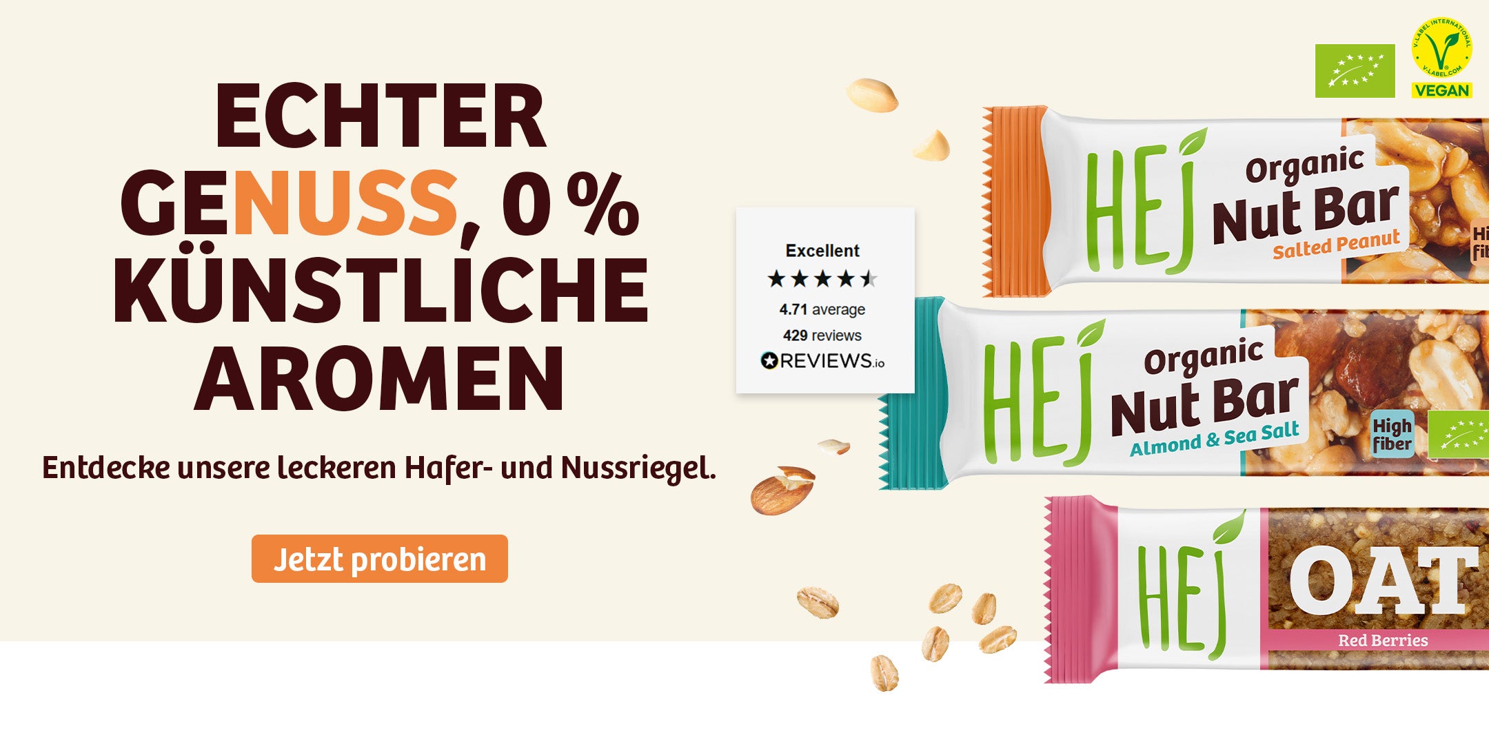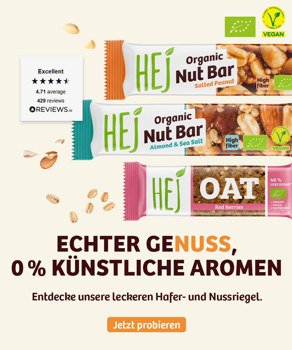 HEJ macht es leicht, sich gut zu fühlen – mit Snacks, die nicht nur zu einem fitten Lebensstil passen, sondern auch richtig lecker schmecken. Wir setzen auf ausgewählte Zutaten und verzichten konsequent auf künstliche Aromen, Füllstoffe, Sucralose, Kollagen, Palmöl & Co.