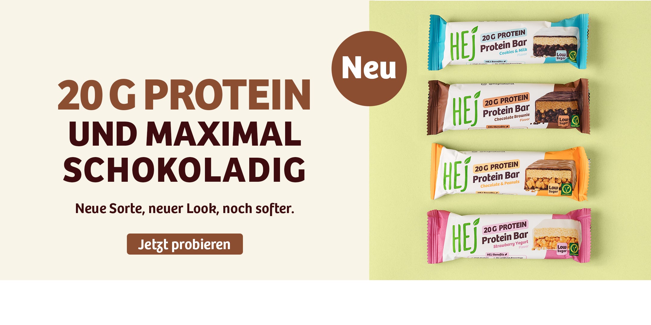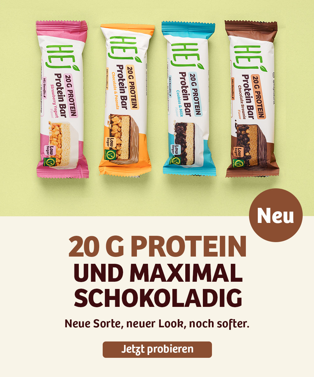 Mit unseren Proteinriegeln und Proteinpulvern liefern wir dir den perfekten Protein-Boost für deinen bewussten Alltag. Nach dem Workout? Appetit im Büro? Mit HEJ in deiner Tasche hast du immer den perfekten Snack dabei.